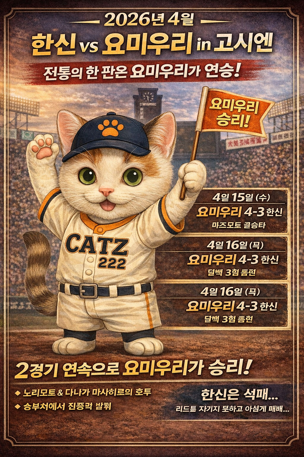 👉 2026 시즌 ‘한신 vs 요미우리’ 라이벌전은 끝까지 치열할 전망입니다.