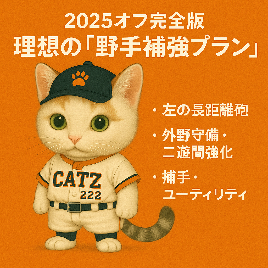 では ブログ即掲載OKの “理想の野手補強プラン(2025オフ編)” を、