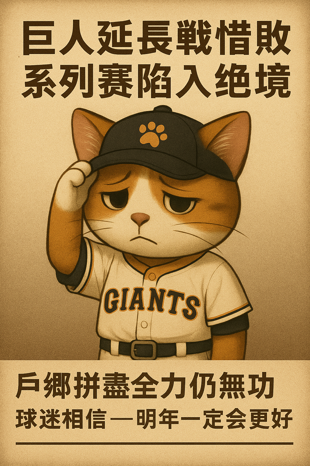 Giants Global(多言語版)2025年10月12日,中央聯盟季後賽第一階段第二戰在橫濱球場進行,讀賣巨人以7比6不敵橫濱DeNA海灣之星,系列賽陷入淘汰邊緣。
